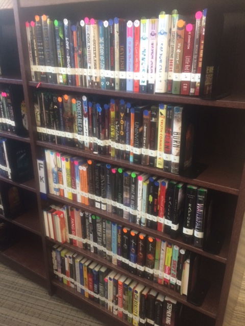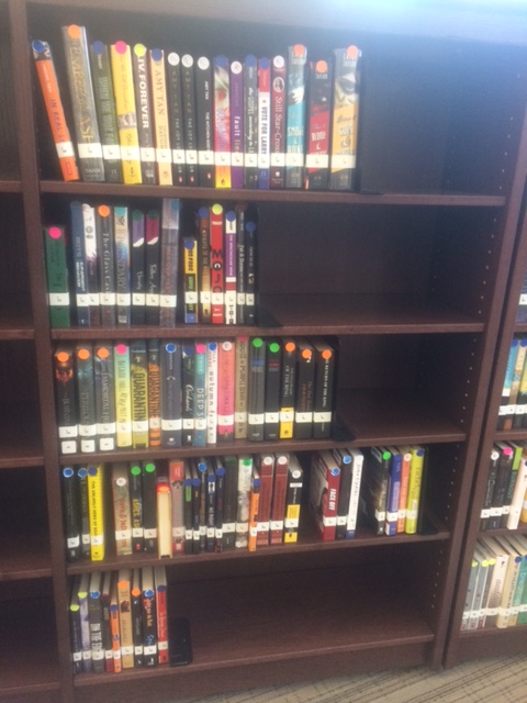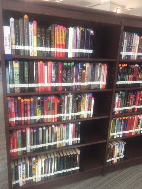 In the coming weeks we will get our new labels and then we will spend a couple of days applying them. This will be the last step in our Genrefication process! I will add pics to this post of the books with their new Mackin spine labels after we finish that last step!